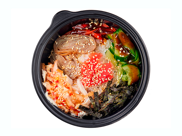 Риснорикуриное филе фриперец болгарскийогурец маринованныйомлетимбирькунжутсоус тонкацусоус чили сладкий
